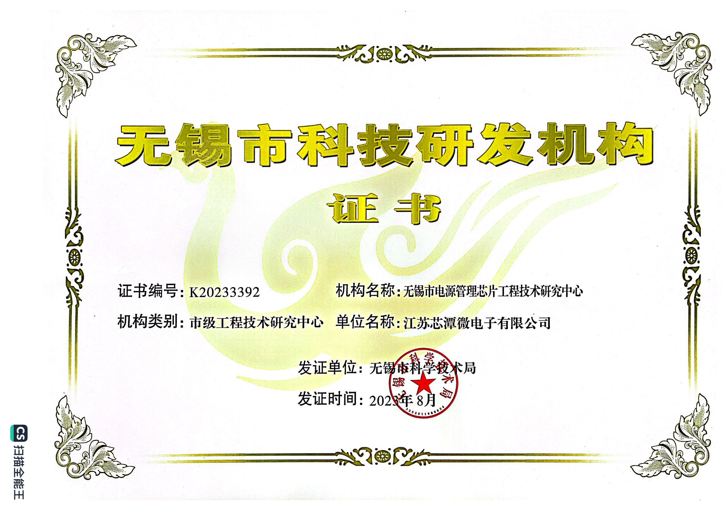 無(wú)錫市科技研發(fā)機(jī)構(gòu)證書(shū)